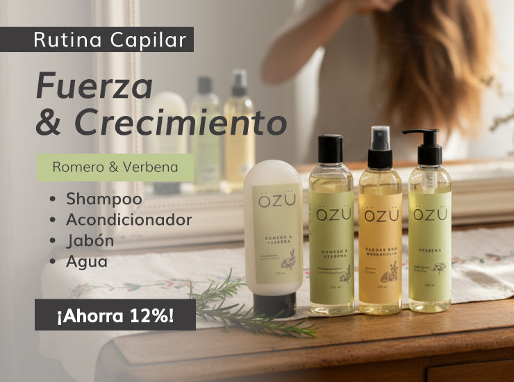 Amo hasta el infinito y más allá los productos de ÖZÜ, el de romero y verbena lo amo amo amo, me deja el pelo suave, con un brillo y fácil de desenredar; donde estaban y porque no los conocí antes.